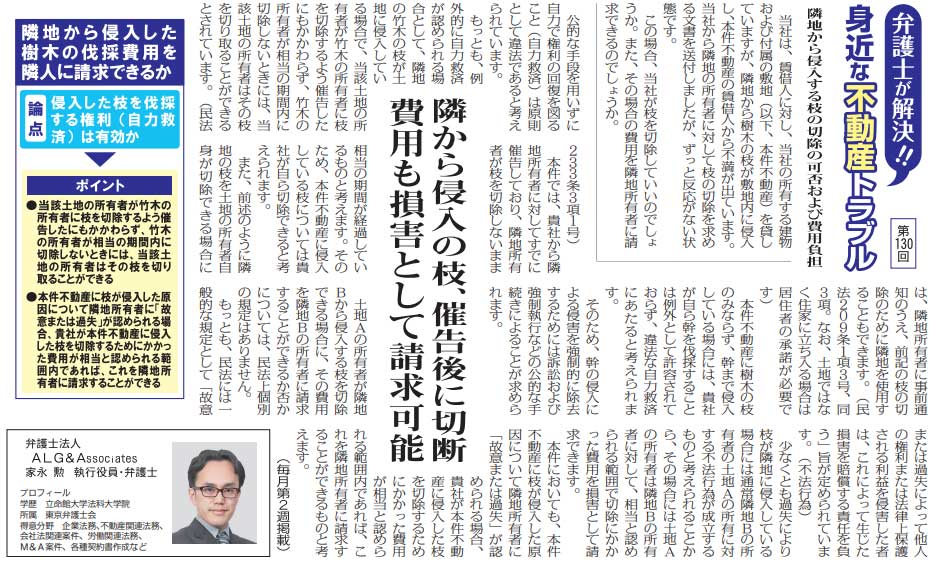 | 「弁護士が解決!!身近な不動産トラブル」の論文を、執行役員弁護士・家永 勲が執筆しました。 | |